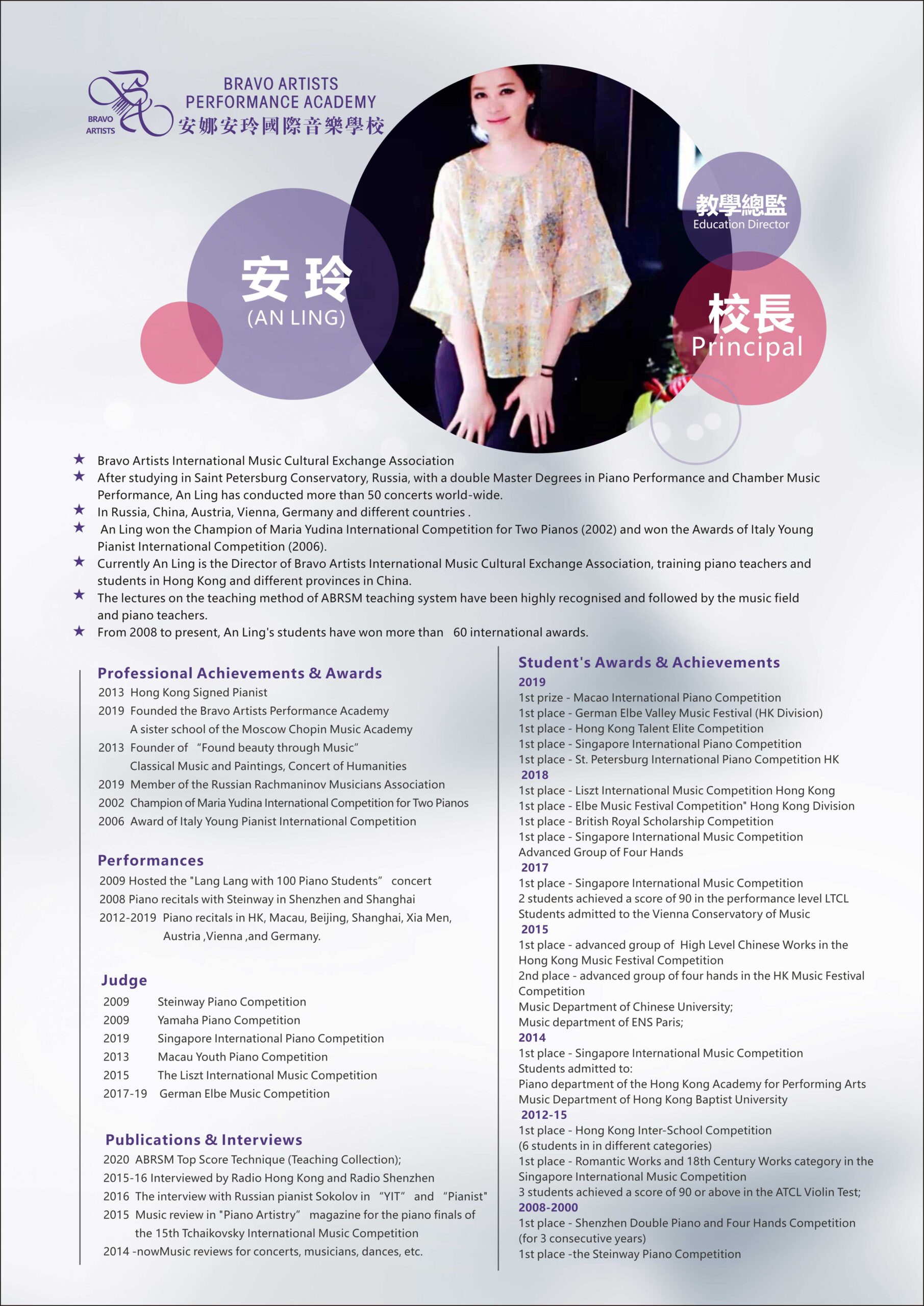 I moved to Hong Kong in 2011. Since 2014, I have been teaching piano teachers in Hong Kong, Shenzhen, Zhuhai, Xiamen and other places as “British Royal Exam Teacher Training”. Lectures on the teaching method of the ABRSM teaching system have been highly recognized and followed by piano teachers.